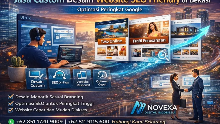 Di Era Digital Saat Ini, Memiliki website Yang SEO Friendly Bukan Lagi Sebuah Pilihan, Tetapi Sebuah Keharusan. Bisnis Yang Ingin Berkembang Secara Online Harus Memiliki website Yang Tidak Hanya Menarik Secara Visual, Tetapi Juga Mudah Ditemukan Oleh Mesin Pencari Seperti Google. Jika Anda Mencari jasa Custom Desain Website SEO Friendly Di Bekasi, Novexa Digital Indonesia Adalah Pilihan Yang Tepat.