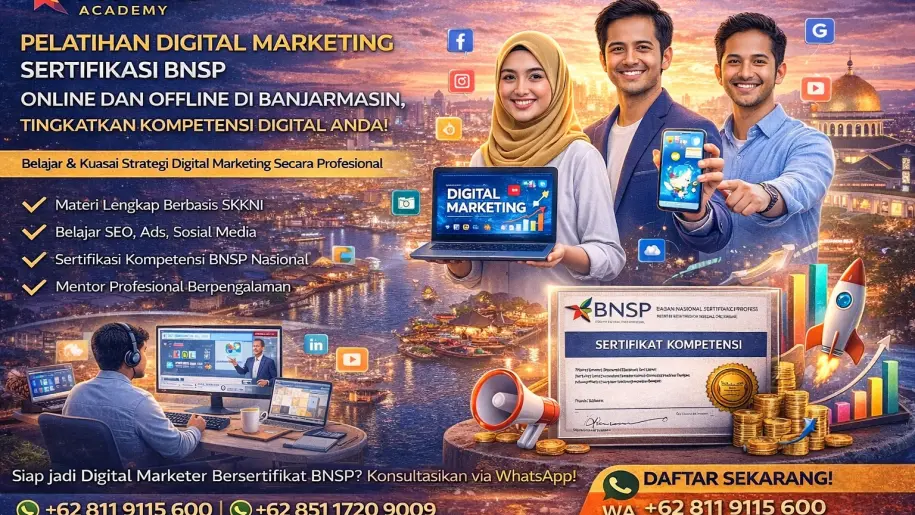 Segera Daftar Pelatihan Digital Marketing Sertifikasi BNSP Di Banjarmasin Dan Tingkatkan Kompetensi Anda Di Dunia Pemasaran Digital.